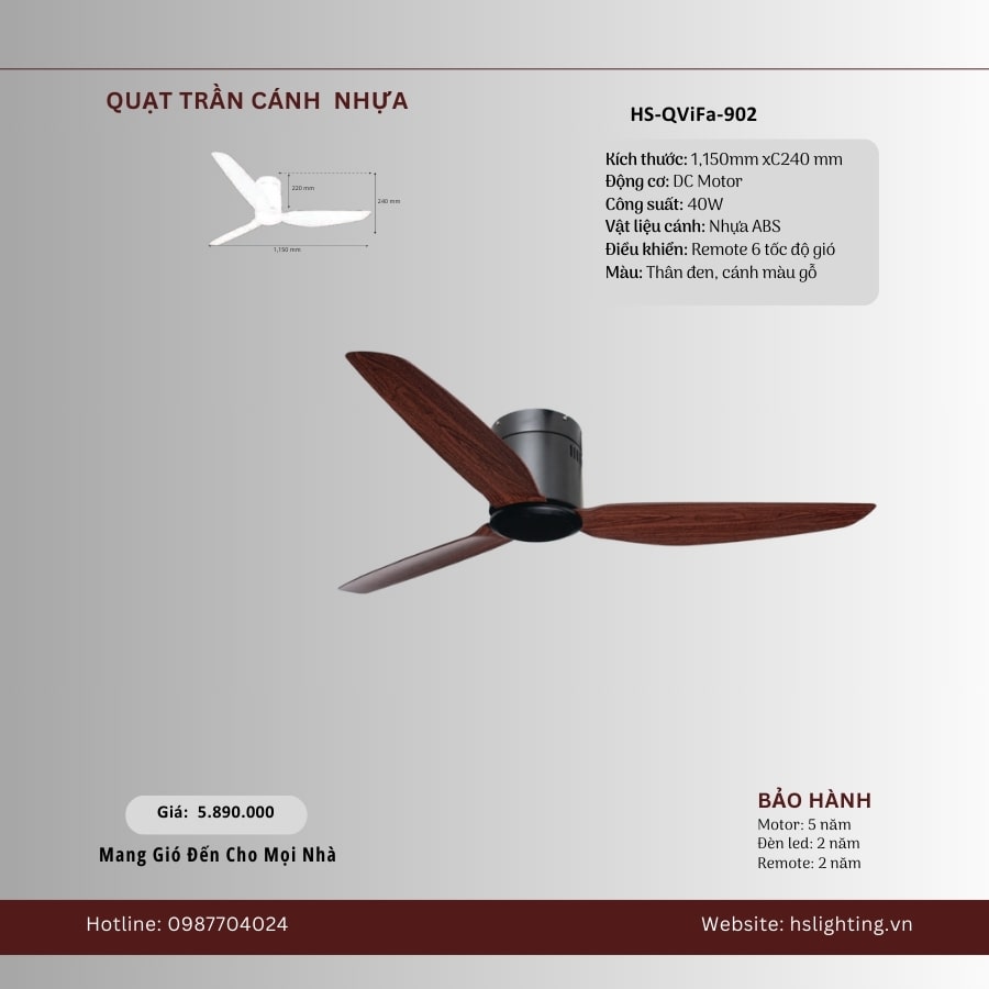 Quạt trần 3 cánh nhựa HS-QViFa-902