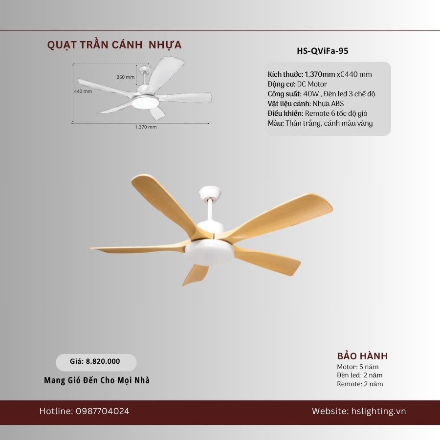 Quạt trần 5 cánh nhựa HS-QViFa-95